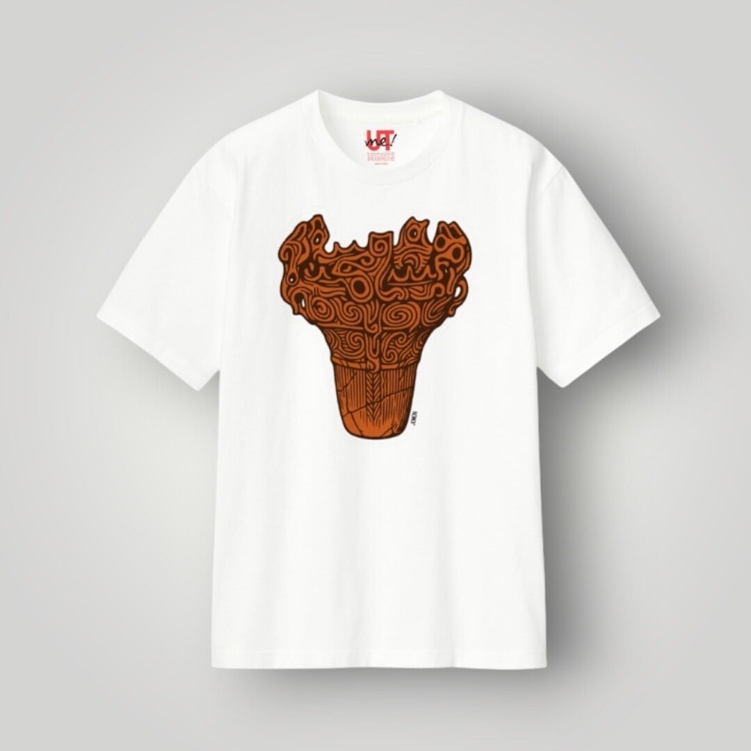 縄文時代を象徴する“火焔土器”をモチーフにしたTシャツです。
