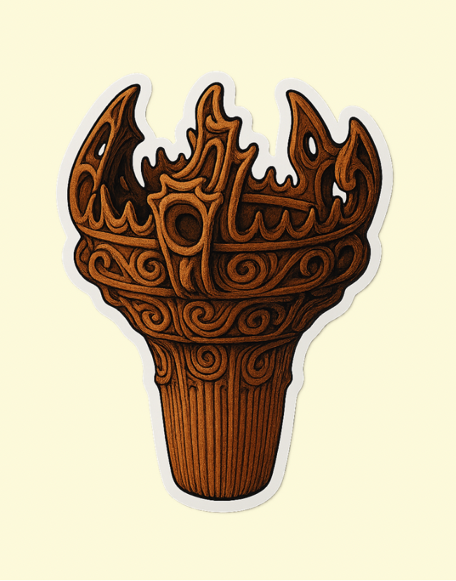 彫りの深さと立体感を大切にした、土器型ステッカーです。